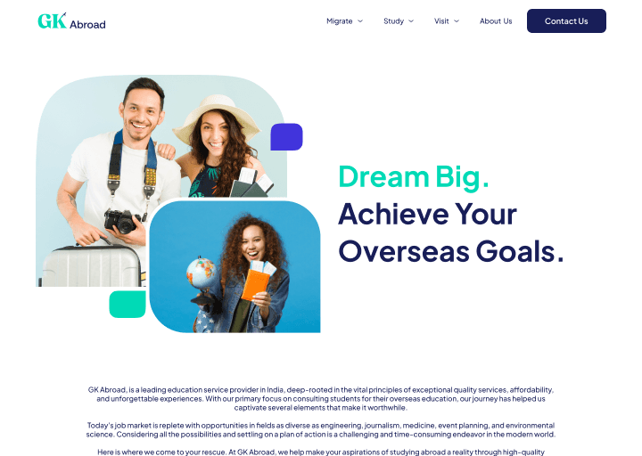 Our objective was to create a distinctive brand identity and a compelling web presence, reflecting GK Abroad’s mission to make global education accessible and supportive.